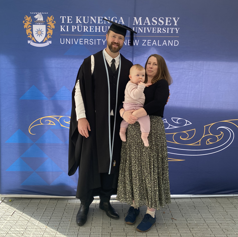 The support around him made a meaningful difference throughout his journey. “My wife was a constant source of guidance, and my lecturers — Jasmine Hansen, Danielle Hodson, and Maria Dacre — were all incredible,” he says. “I’m also grateful to my Associate Teachers, Sarah Carpendale at Central Normal School and Clare McCallum at Koputaroa School, for guiding me through my placements and showing me what great teaching looks like. And my family, especially my parents, were really supportive.”