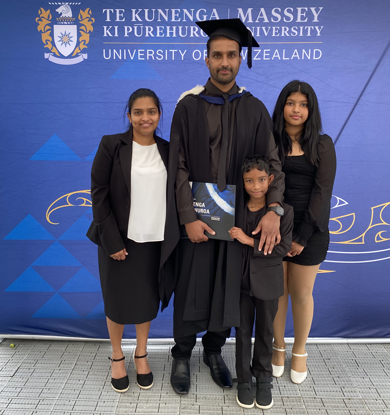 “After completing my veterinary degree in India, I worked as a vet in the Middle East for a few years before moving to New Zealand and joining Massey’s bridging programme. Now, I’m proud to be a Massey graduate,” Nibin shares.
