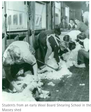 Her preference is easily explained: Riseborough’s links to sheep and wool date back to those early days at Massey when she was the first female – ‘girl’ was standard usage in those days – to qualify with a diploma in wool and wool classing, then continued through research work with wool at Massey in the 1960s and came full circle with her book Shear Hard Work: A History of New Zealand Shearing, published last year by Auckland University Press.