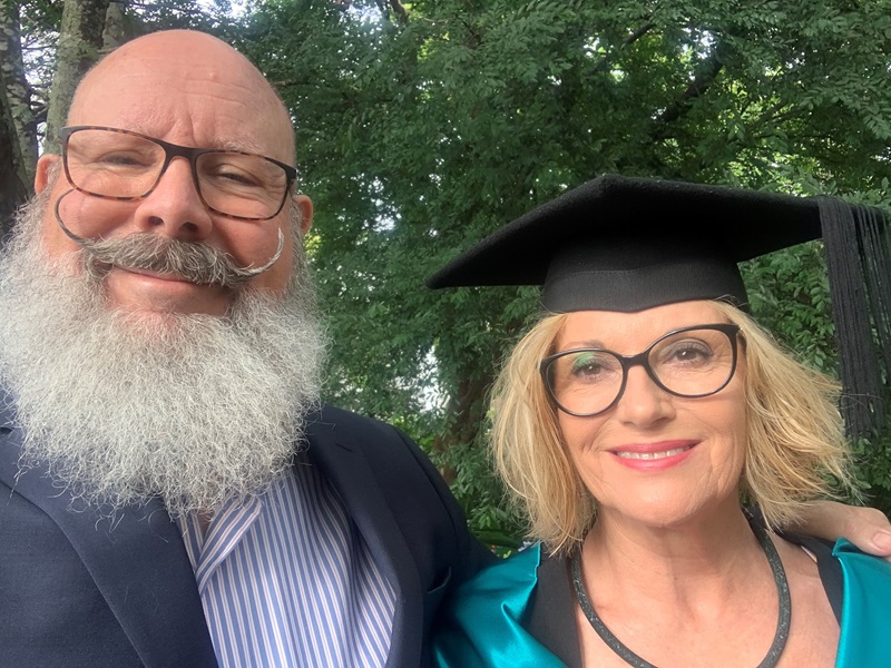 John Menzies celebrating his wife’s 2020 graduation.