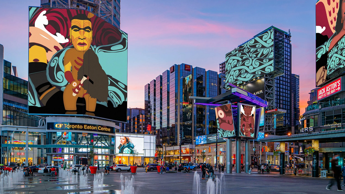 You can see Professor Witehira’s work in galleries, on screens and, increasingly, where people gather. In 2018, his six-minute digital artwork Ngā Tamariki a Tangaroa played at Auckland International Airport, celebrating the children of Tangaroa and the deep ties between Māori culture and the ocean. In 2019, Disrupted Symmetries featured in HERE: Kupe to Cook at Pātaka; in 2021, Māori-land Adventures appeared in City Gallery Wellington’s Every Artist; and in 2022, Knowledge Flows showed at Nuit Blanche, Toronto, curated by Julie Nagam.