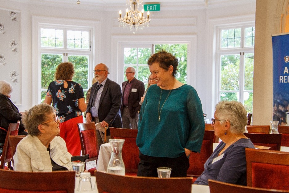 Organised by the Alumni Office, Vice-Chancellor Professor Jan Thomas invited a group of Professor Emeriti and distinguished alumni for an afternoon tea in the Russell Room at Wharerata on the ManawatÅ« campus in November. The event provided an opportunity for friends and past colleagues to reconnect and learn about Massey’s future plans.
